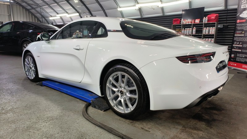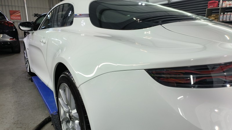 Nous avons proposé au propriétaire de cette Alpine A110 blanche notre programme Sérum Ultra dédié aux véhicules neuf: