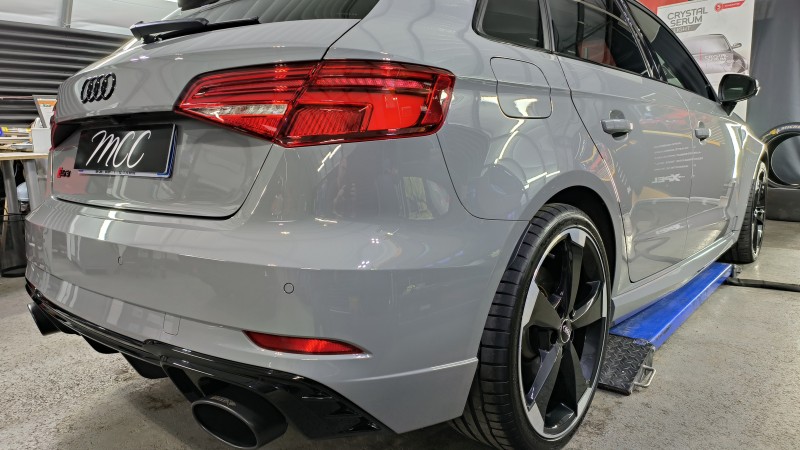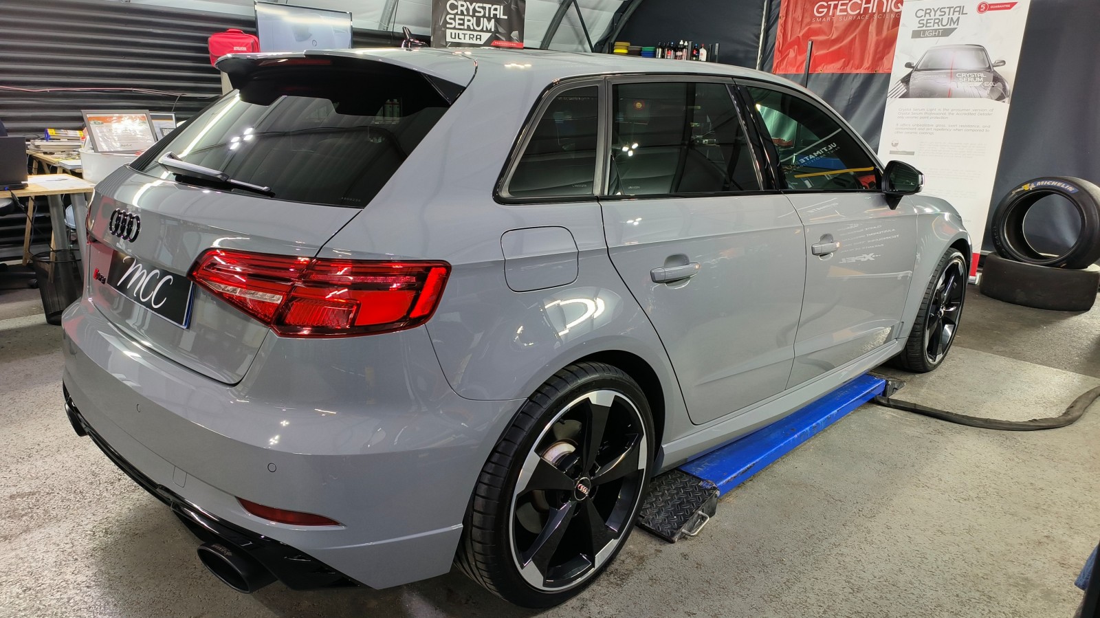 Notre client, déjà convaincu des vertus de la protection céramique Gtechniq Crystal Sérum Ultra, car déjà posé sur un autre véhicule, a souhaité protéger de la même manière son Audi RS3 gris nardo.