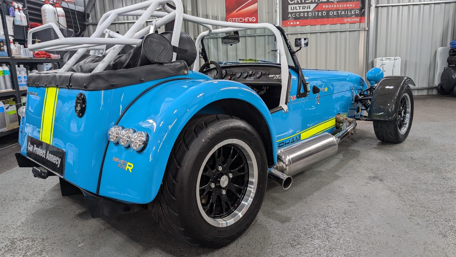 C’est un rendez-vous placé sous le signe de la complicité et de la performance. Deux de nos clients et amis nous ont confié simultanément leurs bolides : une Caterham 1600 et une redoutable 420R 2.0L. Dans l’écrin de notre atelier d’Argonay, nous avons orchestré un double detailing de précision pour magnifier ces icônes de la légèreté.