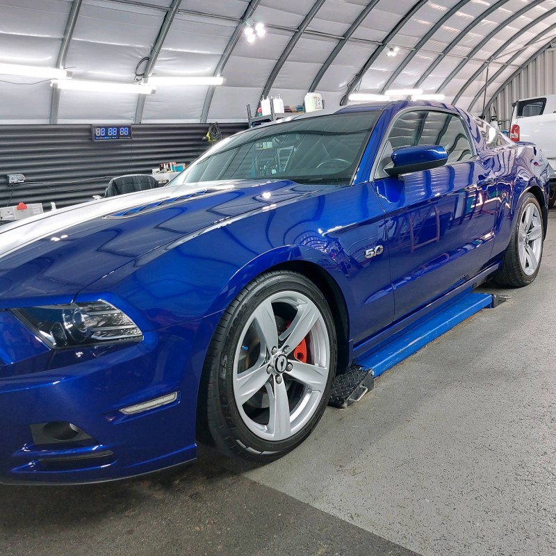 Après un devis sur mesure, nous avons proposé à notre client une prestation de restauration de vernis et de la pose d'une protection céramique Gtechniq Crystal Serum Ultra 10h garantie 9ans sur cette magnifique Ford Mustang.