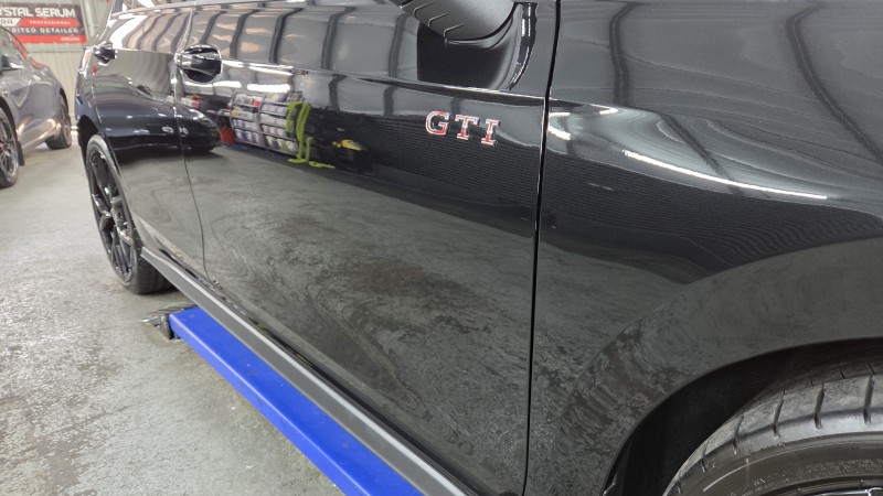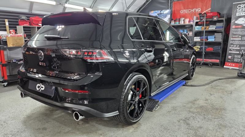 Cette Volkswagen Golf 8 GTI Noir Intense est désormais protégée par le traitement céramique Gtechniq Crystal Serum Ultra 10H, la solution haut de gamme pour préserver l’éclat et la profondeur de la peinture tout en offrant une protection longue durée.