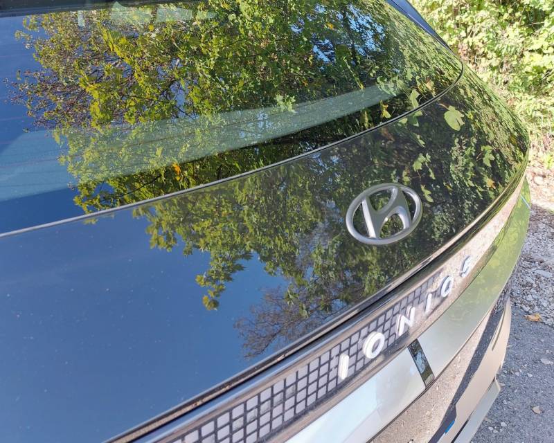 Après un 1er lavage, une décontamination complète et un second lavage, nous avons réalisé le polissage de correction de la Hyundai ioniq 5 noire.